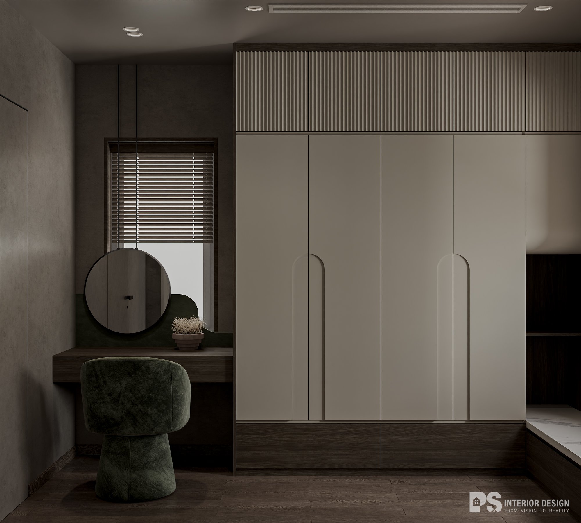 Dự án Aqua Riverside City được PS INTERIOR DESIGN thiết kế với phong cách Wabi Sabi mang nét hài hòa với tone màu beige êm đềm, nhấn xanh rêu kết nối với thiên nhiên.