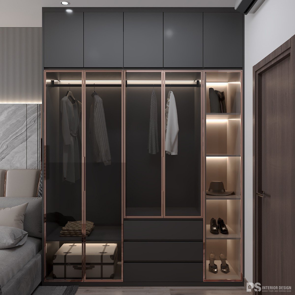 Các tủ kệ để đồ, bàn trang điểm được bố trí hài hòa, nhằm tiết kiệm diện tích nhưng lại tối đa được công năng cho gia chủ khi sử dụng.
