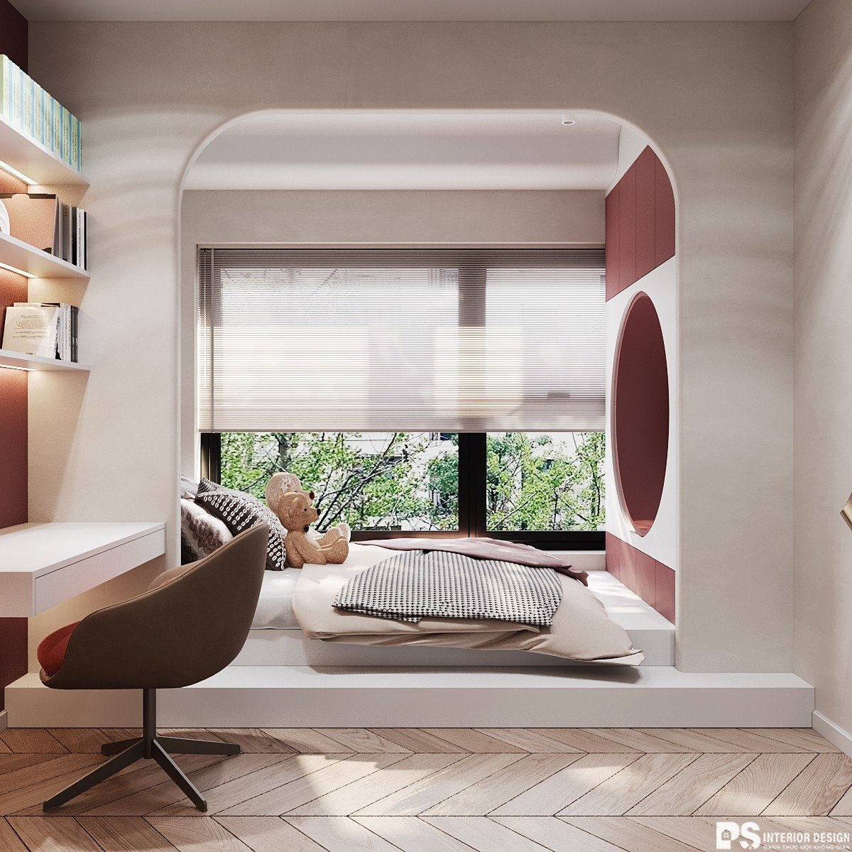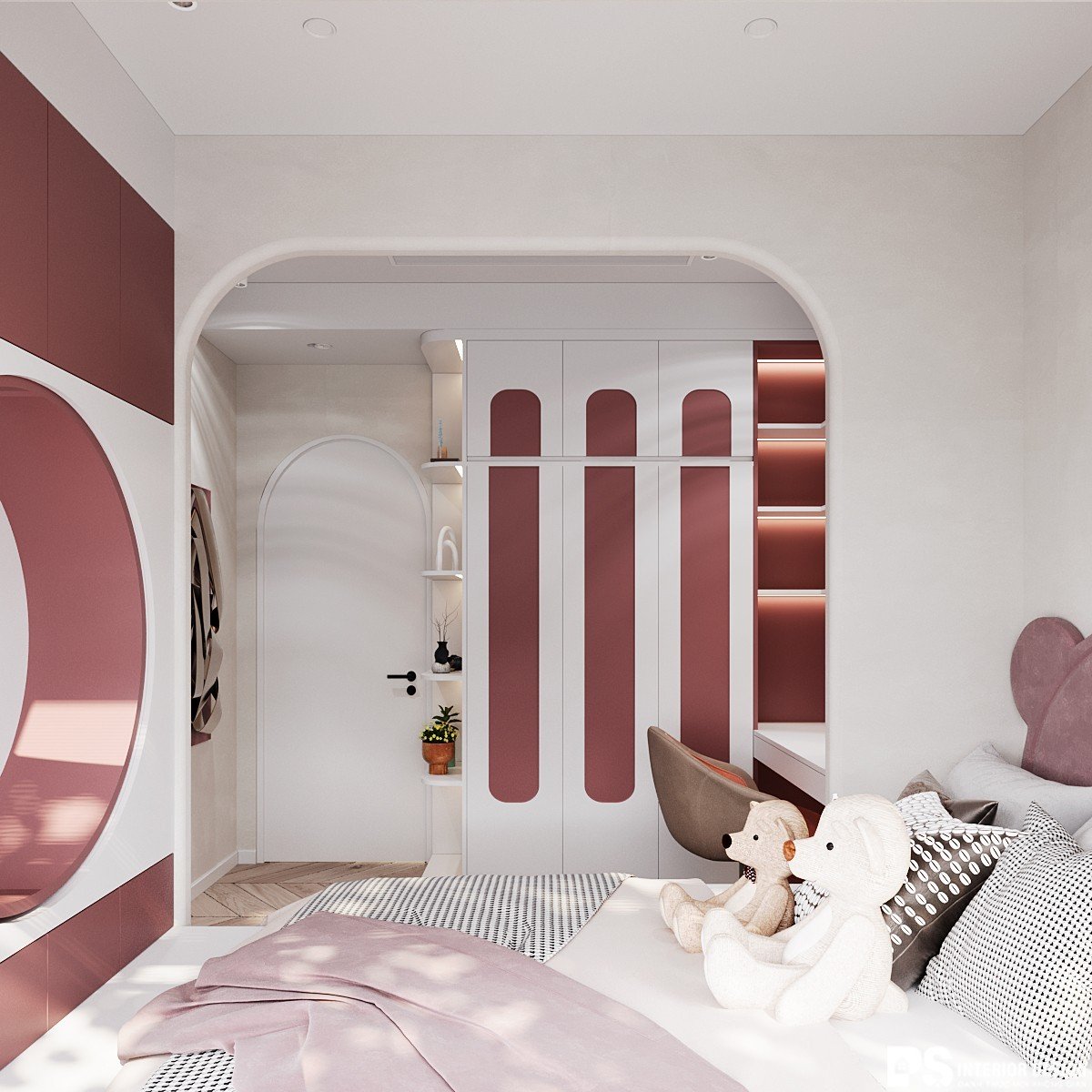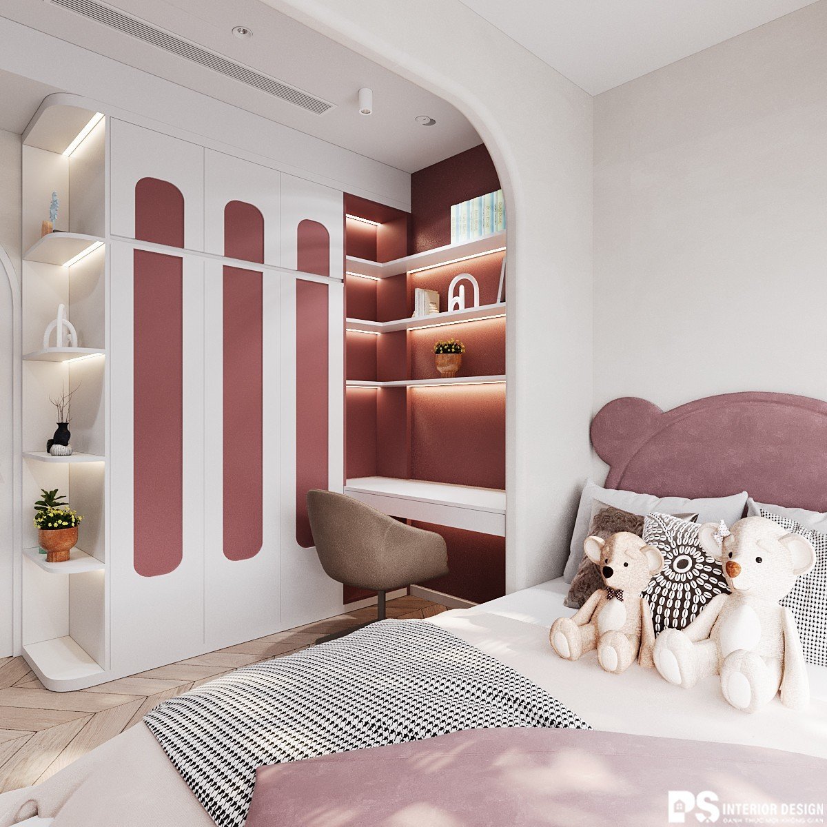 Màu hồng thường phù hợp với các bé gái, không gian ngủ trở nên mềm mại và nhẹ nhàng hơn khá nhiều. Giúp các bé có thêm một không gian để giải tỏa sau những giờ học tập mệt mỏi.