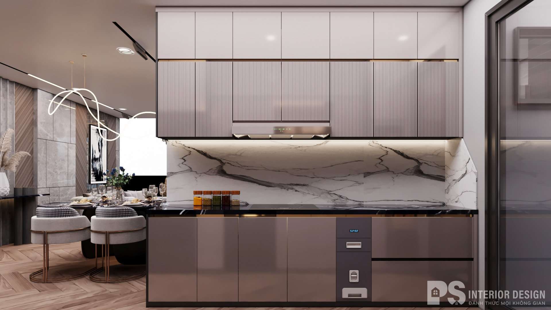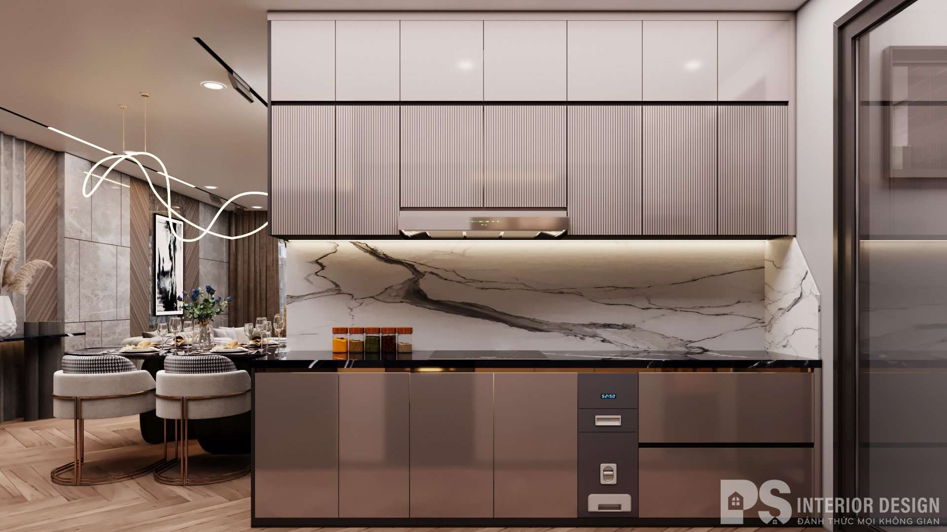 Khi thiết kế nội thất căn hộ Hà Đô Centrosa Garden cho gia chủ, PS INTERIOR DESIGN đã tích hợp cả khu vực ăn và bếp nấu tiện lợi. Đây không chỉ là nơi tạo nên những bữa cơm gia đình ấm cúng. Mà còn là nơi gắn kết tình cảm mọi thành viên với nhau.
