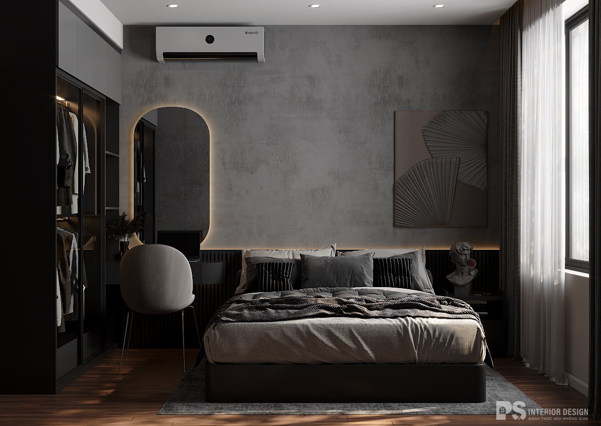 Phòng ngủ master được thiết kế tối giản và bố trí nội thất tiết kệm diện tích, các thiết bị phụ kiện được trang bị đầy đủ tiện nghi để gia chủ có thể nghĩ ngơi, thư giãn.
