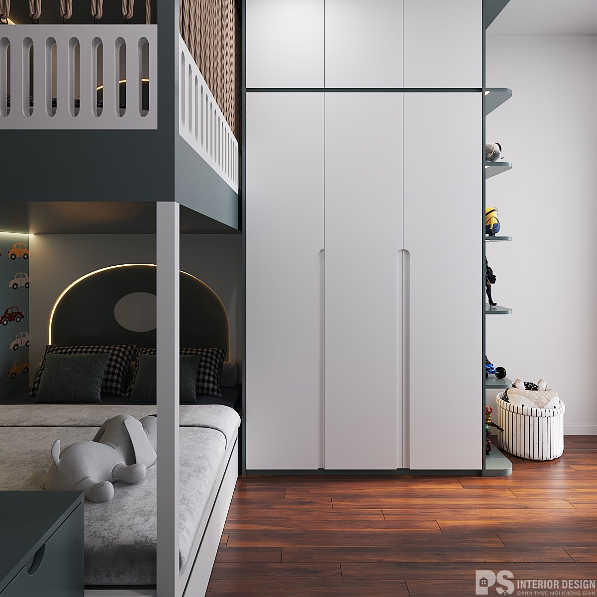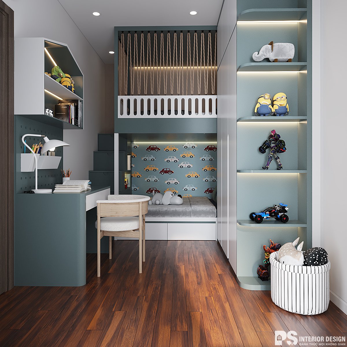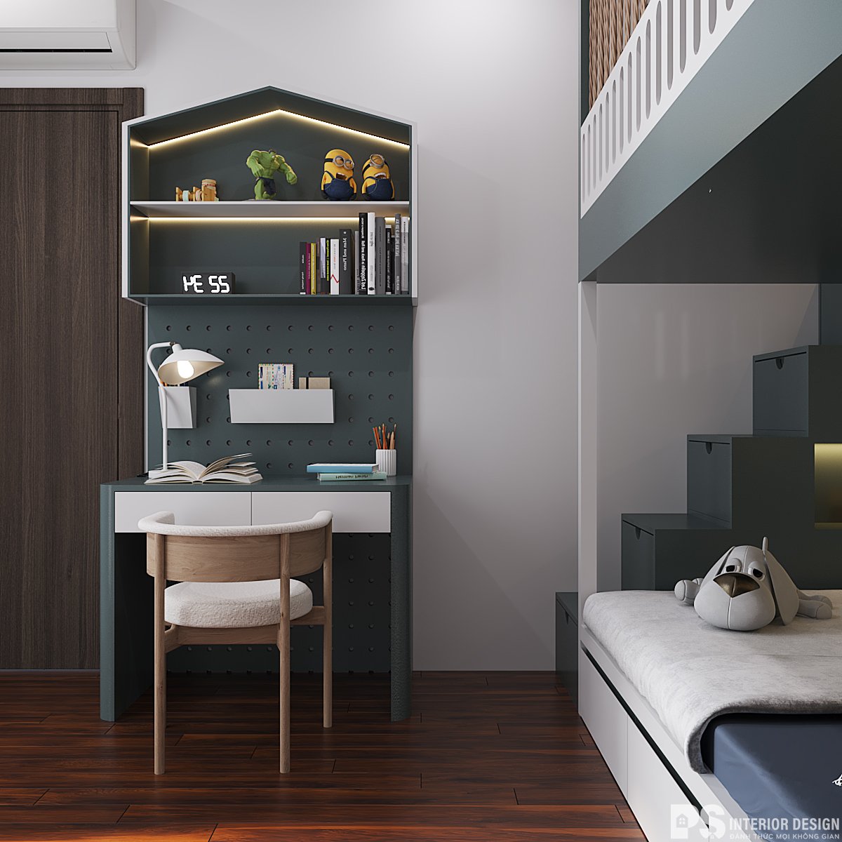 Không gian phòng ngủ cho bé được thiết kế dễ thương, sinh động và tối ưu diện tích giúp giữ được không gian rộng rãi để bé có thể thoải mái vui chơi, sinh hoạt trong chính căn phòng của mình.