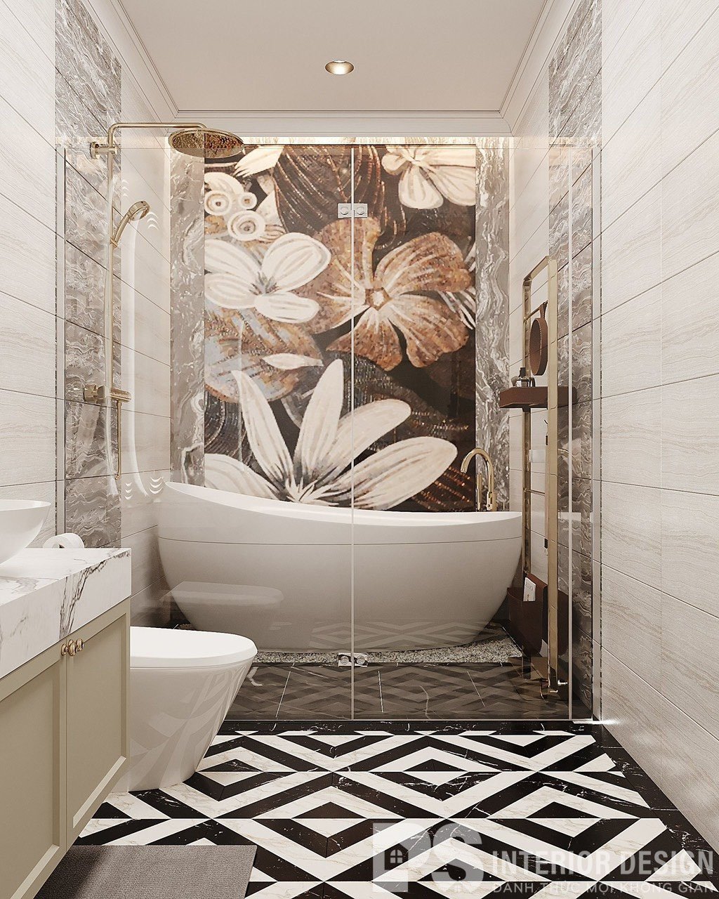 Các hoạ tiết, hoa văn được gia chủ rất chú trọng. Với gam màu kem trắng chủ đạo phối cùng với màu gỗ nâu trầm ấm thanh lịch và được đánh bóng thể hiện đẳng cấp của gia chủ.
