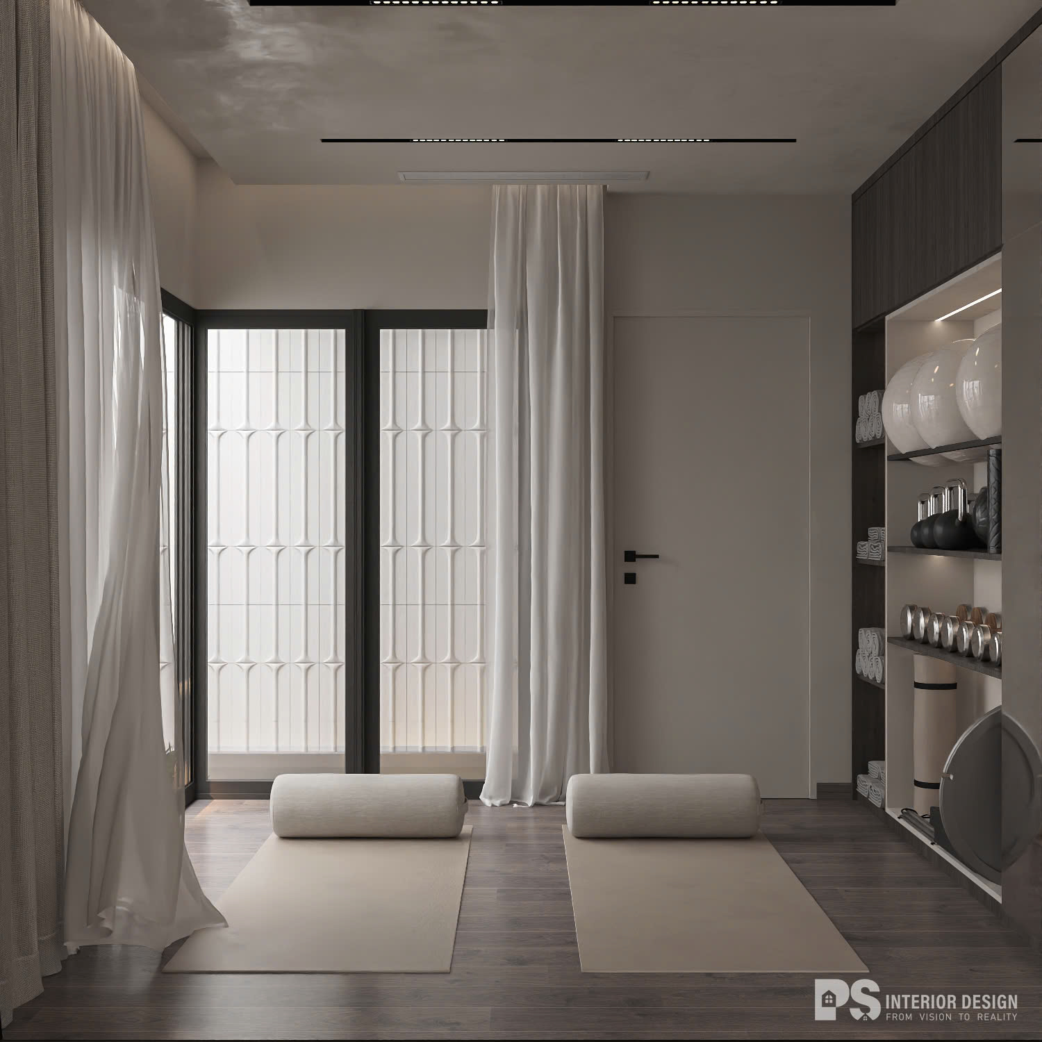 Phòng thể thao được bố trí tinh gọn, thoáng rộng; cho sự điều hòa hơi thở, tập trung lắng nghe cơ thể.