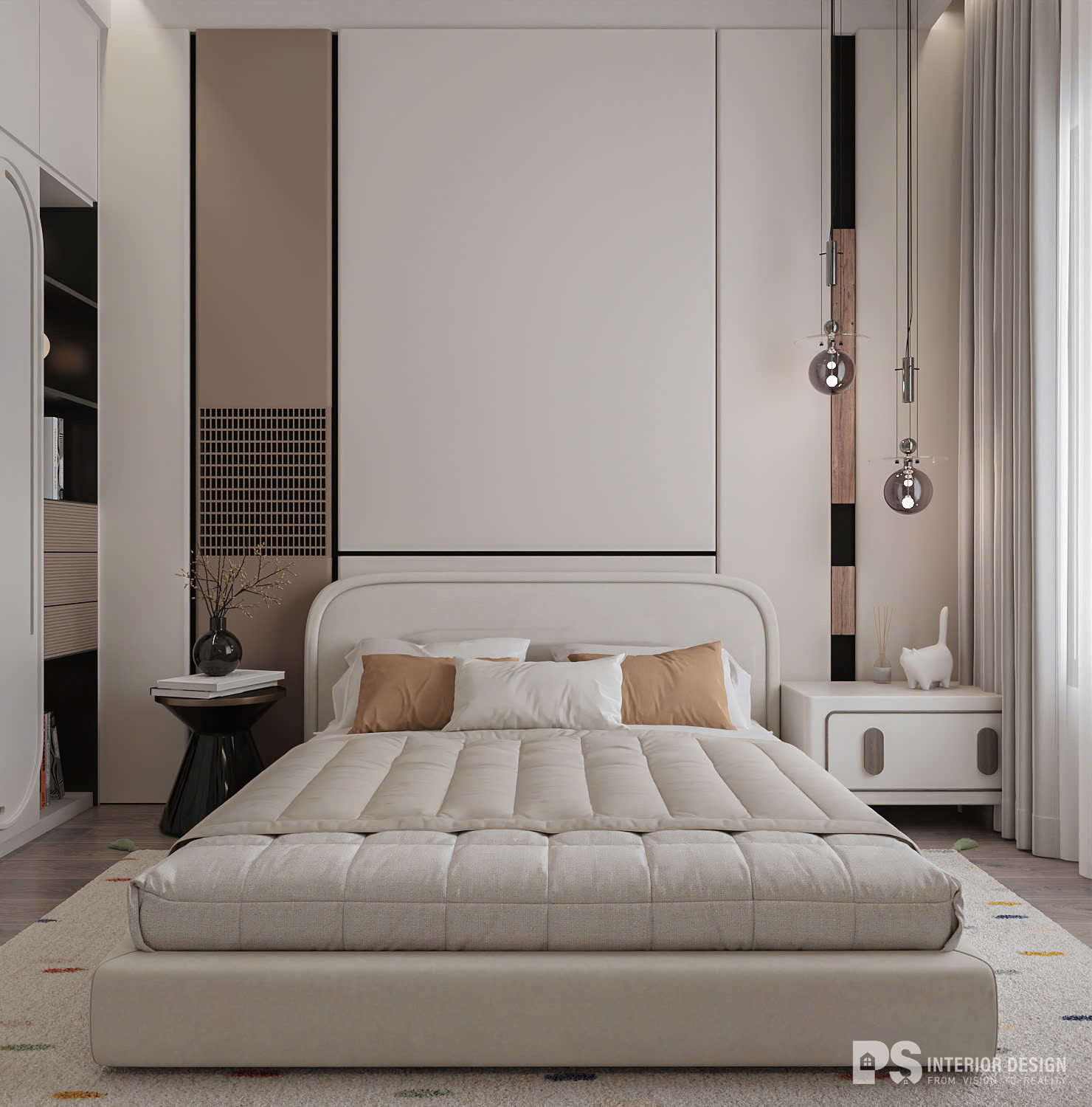 Phòng ngủ lấy trung tính làm nền tảng, thư giãn là trọng tâm; mang đến cảm giác nhẹ nhõm, hoàn hảo để tái tạo năng lượng.