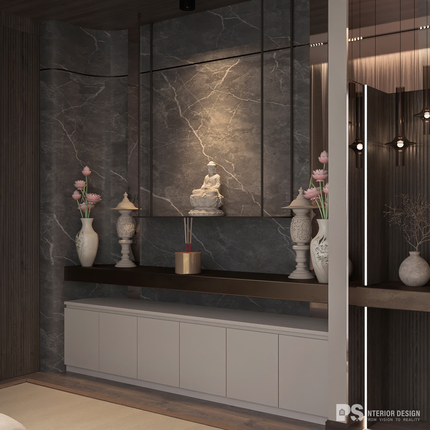 Phòng thờ thiêng liêng và trang nhã, phản chiếu đời sống tinh thần của con người, nơi nuôi dưỡng những giá trị sâu sắc.