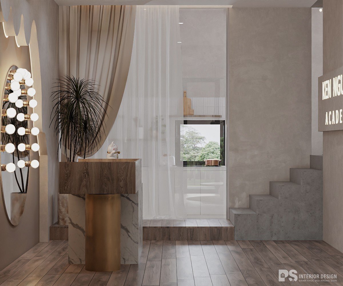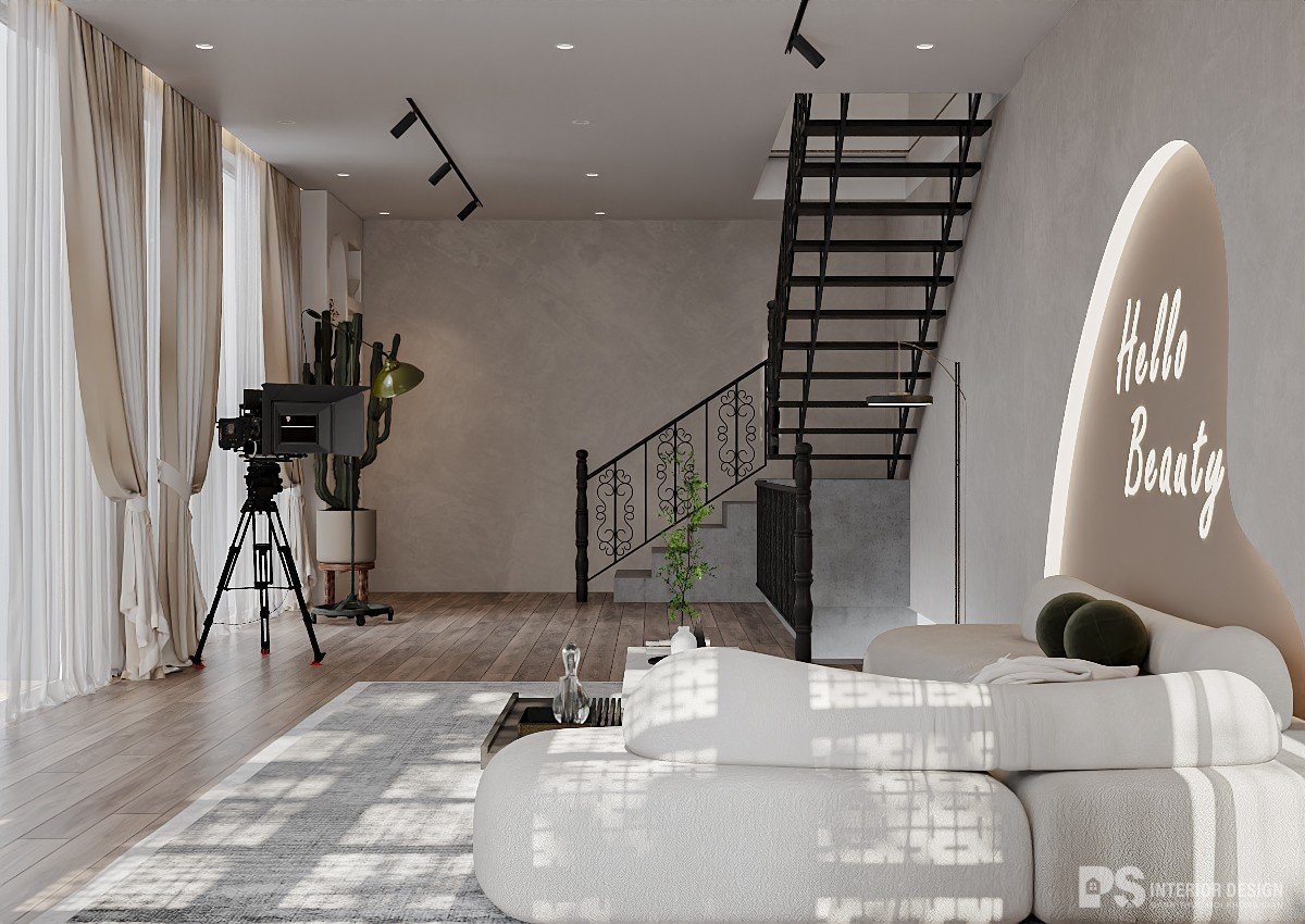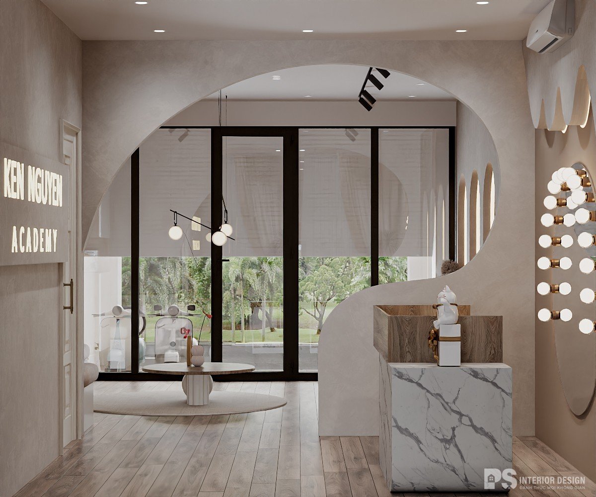 Không gian kinh doanh làm đẹp với thiết kế nội thất phong cách Wabi-Sabi tạo ra một môi trường yên tĩnh, mộc mạc và đầy chất thiền. Lấy cảm hứng từ triết lý Nhật Bản, không gian này chú trọng vào sự đơn giản và vẻ đẹp tự nhiên, mang đến trải nghiệm nhẹ nhàng và thanh thoát cho khách hàng. Thiết kế này không chỉ tôn lên vẻ thanh lịch mà còn tạo cảm giác thư giãn, là nơi lý tưởng để khách hàng tận hưởng những phút giây chăm sóc bản thân trong sự tĩnh lặng và bình yên.