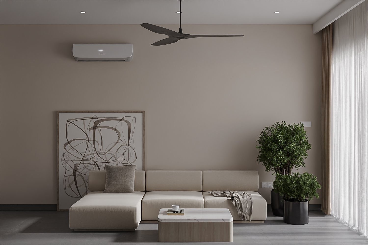 Sắc xám trung tính tạo cảm hứng yên bình, tĩnh tại (phòng khách Minimalism Style)
