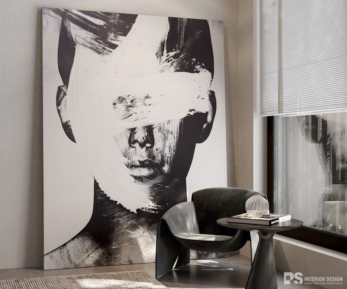 Không gian trầm tĩnh mang dấu ấn cá nhân từ tranh, thêm chút thiên nhiên là đủ đẻ hài hòa (phòng khách Minimalism Style)