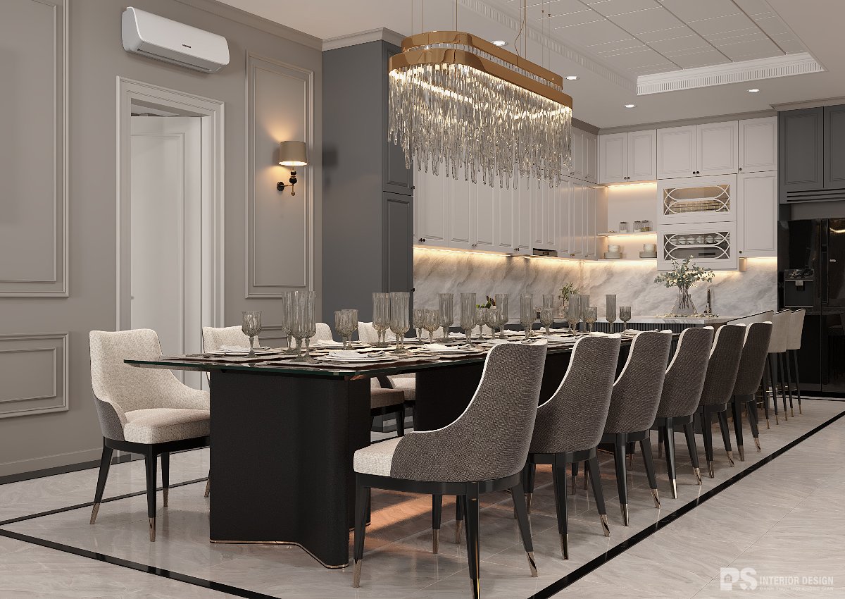 Không gian Neoclassical luôn sẵn sàng cho những bữa tiệc (bàn ăn, bếp Neoclassical)