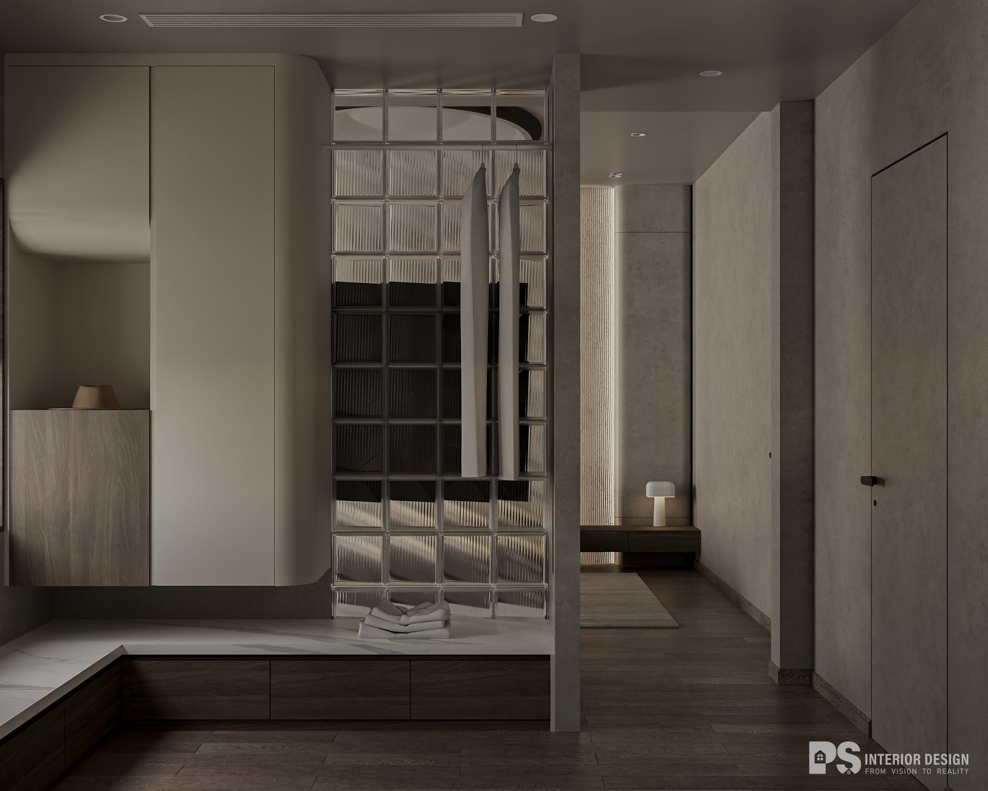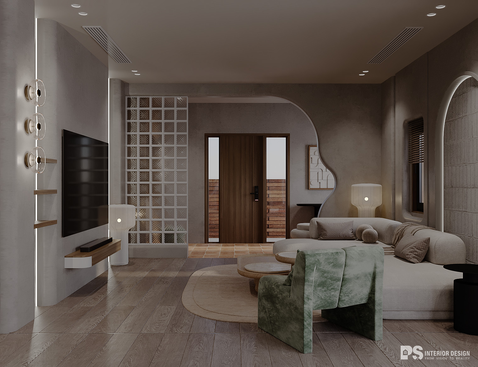 Dự án Aqua Riverside City được PS INTERIOR DESIGN thiết kế với phong cách Wabi Sabi mang nét hài hòa với tone màu beige êm đềm, nhấn xanh rêu kết nối với thiên nhiên.
