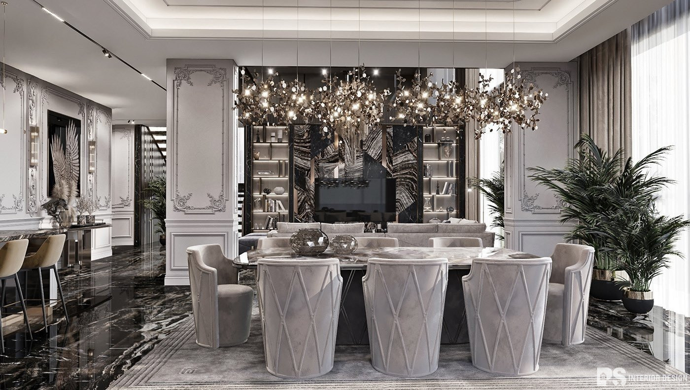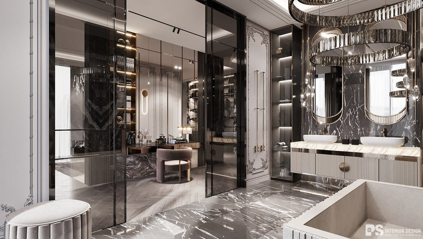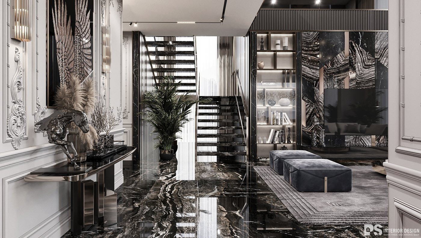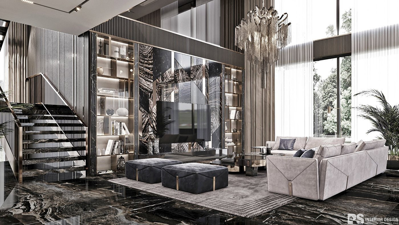 Phòng khách được ví như trái tim của ngôi nhà, nên làm sao để thiết kế được phong cách tân cổ điển một cách trang hoàng, lộng lẫy và xa hoa là một bài toán đối với các KTS tại PS INTERIOR DESIGN.