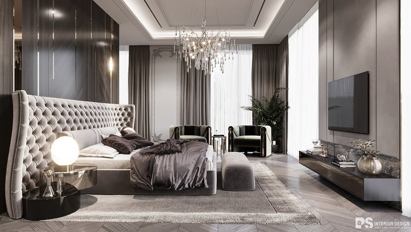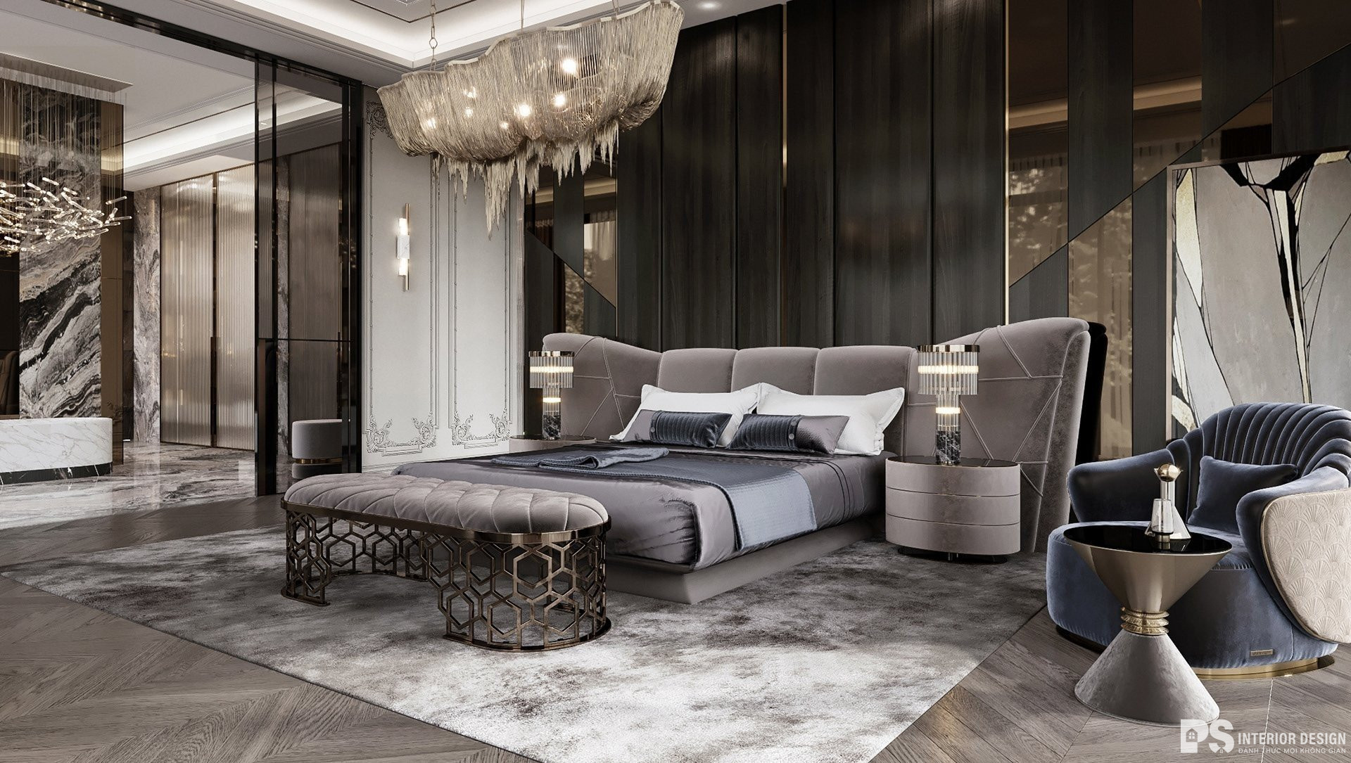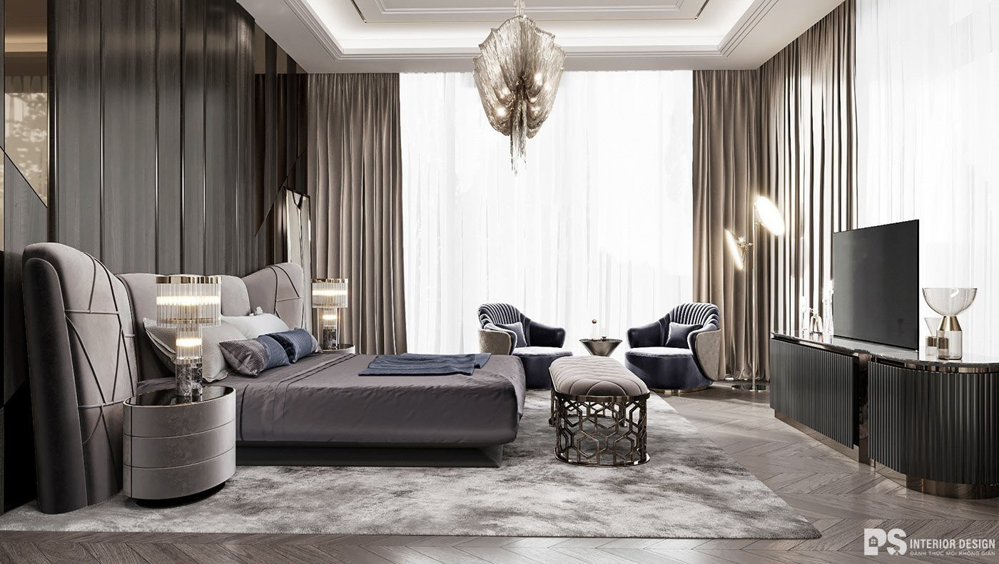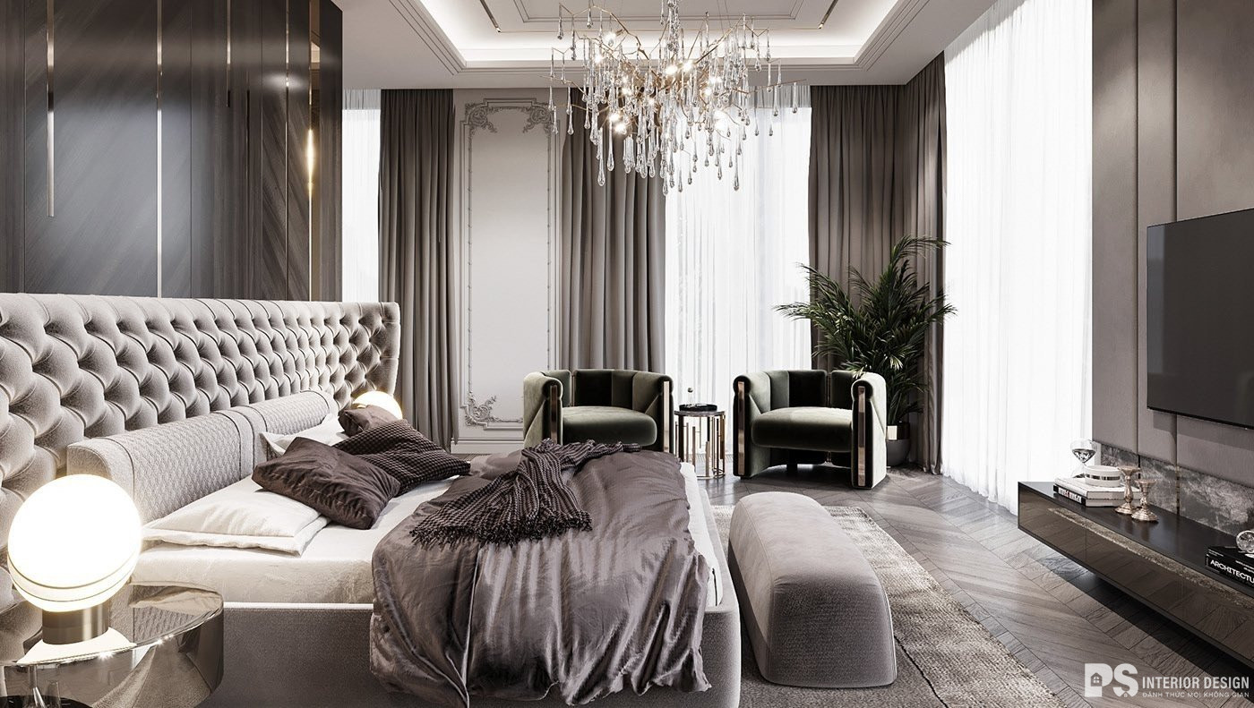 Được chọn tông màu trầm và được bố trí ở vị trí đắc địa nên phòng ngủ master đã bật lên được cái gu, cá tính của gia chủ khi chọn nơi này để nghỉ ngơi.