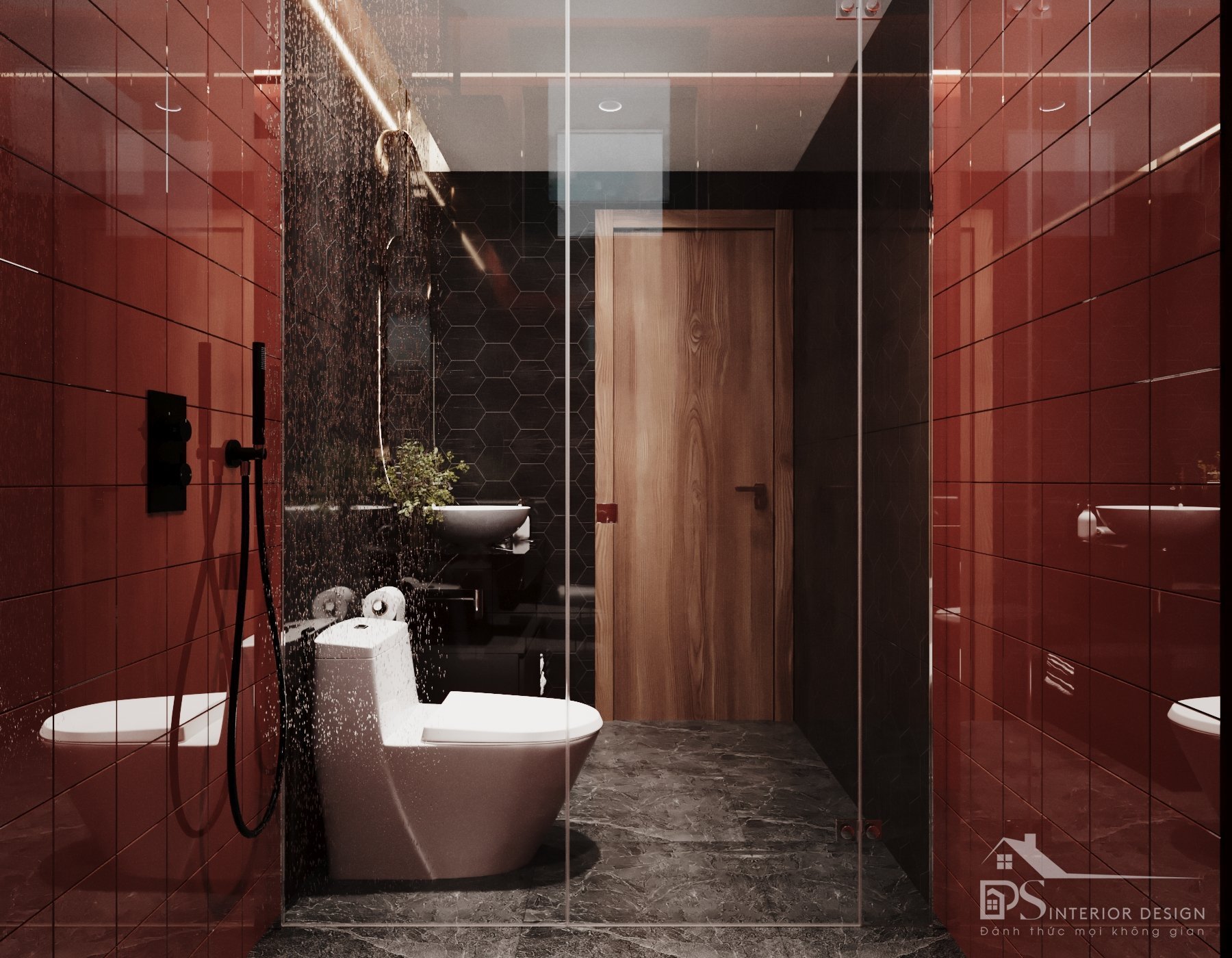 Ngăn cách với giường ngủ, bàn làm việc và khu vực thay đồ bằng một vách kính vô cùng tinh tế và sang trọng. Mở ra một không gian mới cho cả gian phòng