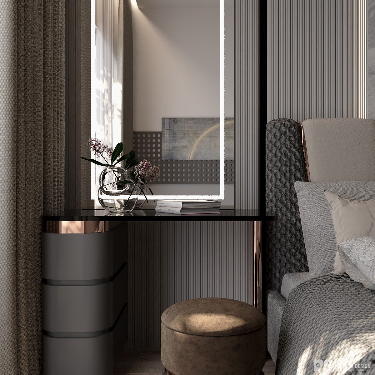 Các tủ kệ để đồ, bàn trang điểm được bố trí hài hòa, nhằm tiết kiệm diện tích nhưng lại tối đa được công năng cho gia chủ khi sử dụng.