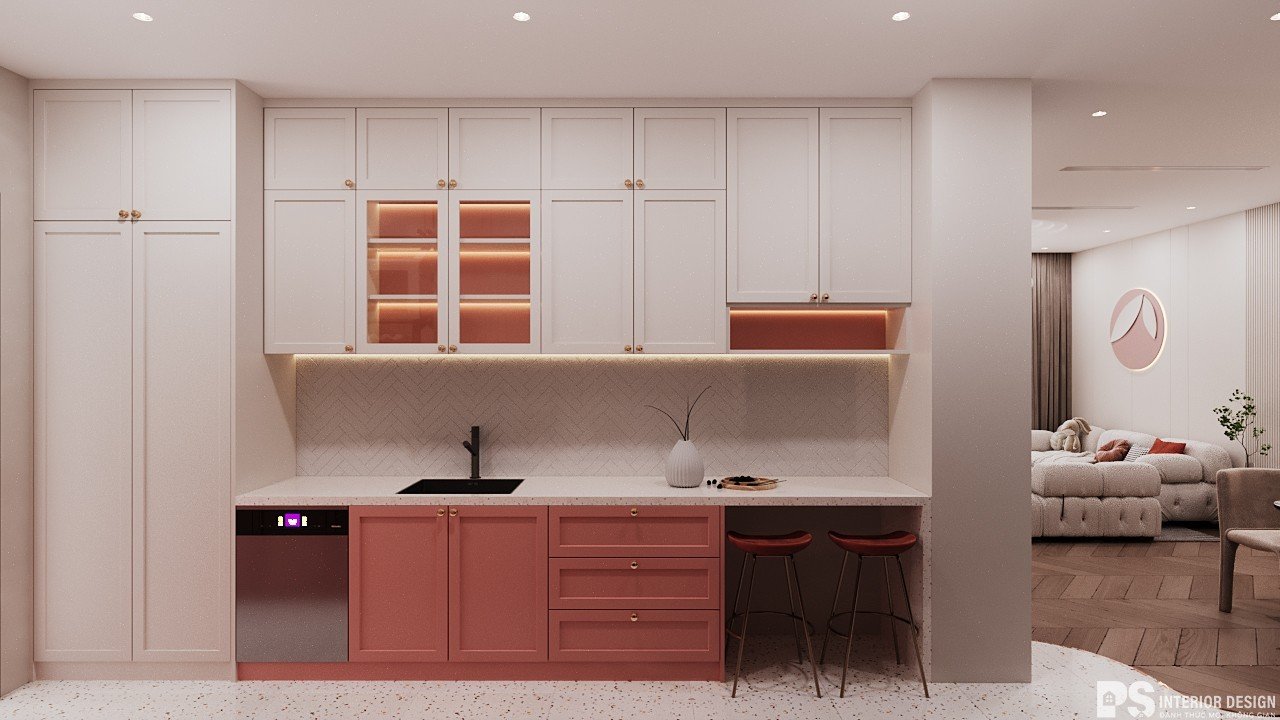 Không ít người mơ về cuộc sống màu hồng, thì giờ đây PS INTERIOR DESIGN đã biến ước mơ đó thành sự thật. Các kiến trúc sư khéo léo đan xen giữa màu hồng và phong cách Wabi Sabi đã mang lại hiệu quả thẩm mỹ vô cùng cao và cả không gian trở nên vô cùng sang trọng nhưng lại không kém phần ấm cúng và mang đến cảm yếu tố lãng mạn - chìm đắm vào một không gian thơ mộng.