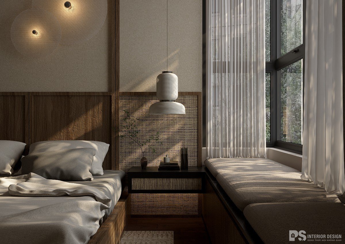 Phòng ngủ có lối thiết kế tối giản cùng với các chất liệu tự nhiên tạo cảm giác gần gũi và thân thiệt với môi trường giúp cho gia chủ cảm giác nhẹ nhàng và bình yên khi về căn phòng ngủ của mình.