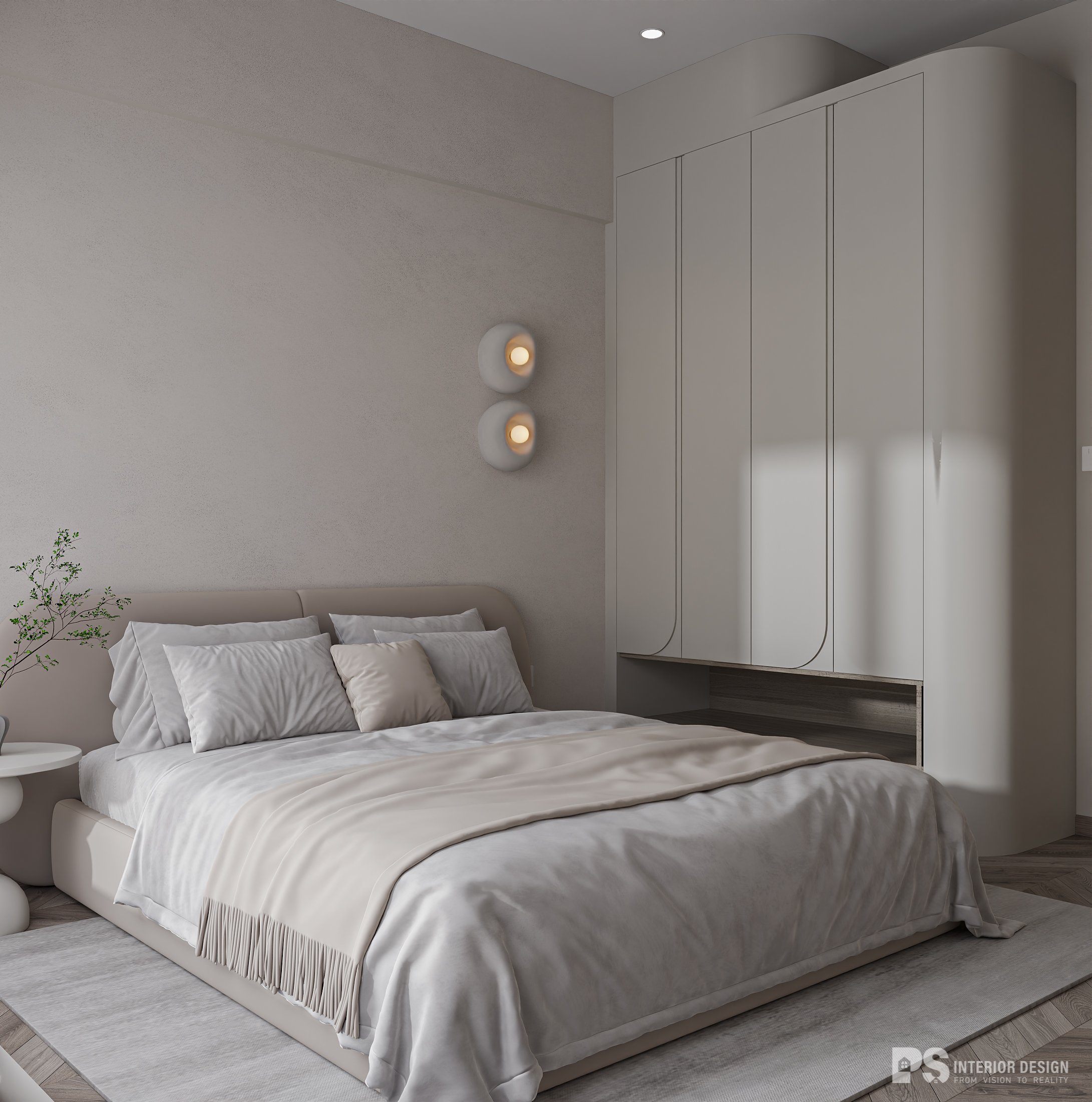 Trong phòng ngủ phong cách Minimalism, không gian được tạo ra với sự tĩnh lặng và thanh bình. Những gam màu trung tính tạo nên một bức tranh yên bình, giúp tâm hồn thả lỏng và thư giãn sau những ngày làm việc căng thẳng. Mỗi chi tiết trong không gian đều được chọn lọc cẩn thận, từ giường ngủ đến những đồ trang trí, tạo nên một không gian gọn gàng và tinh tế.