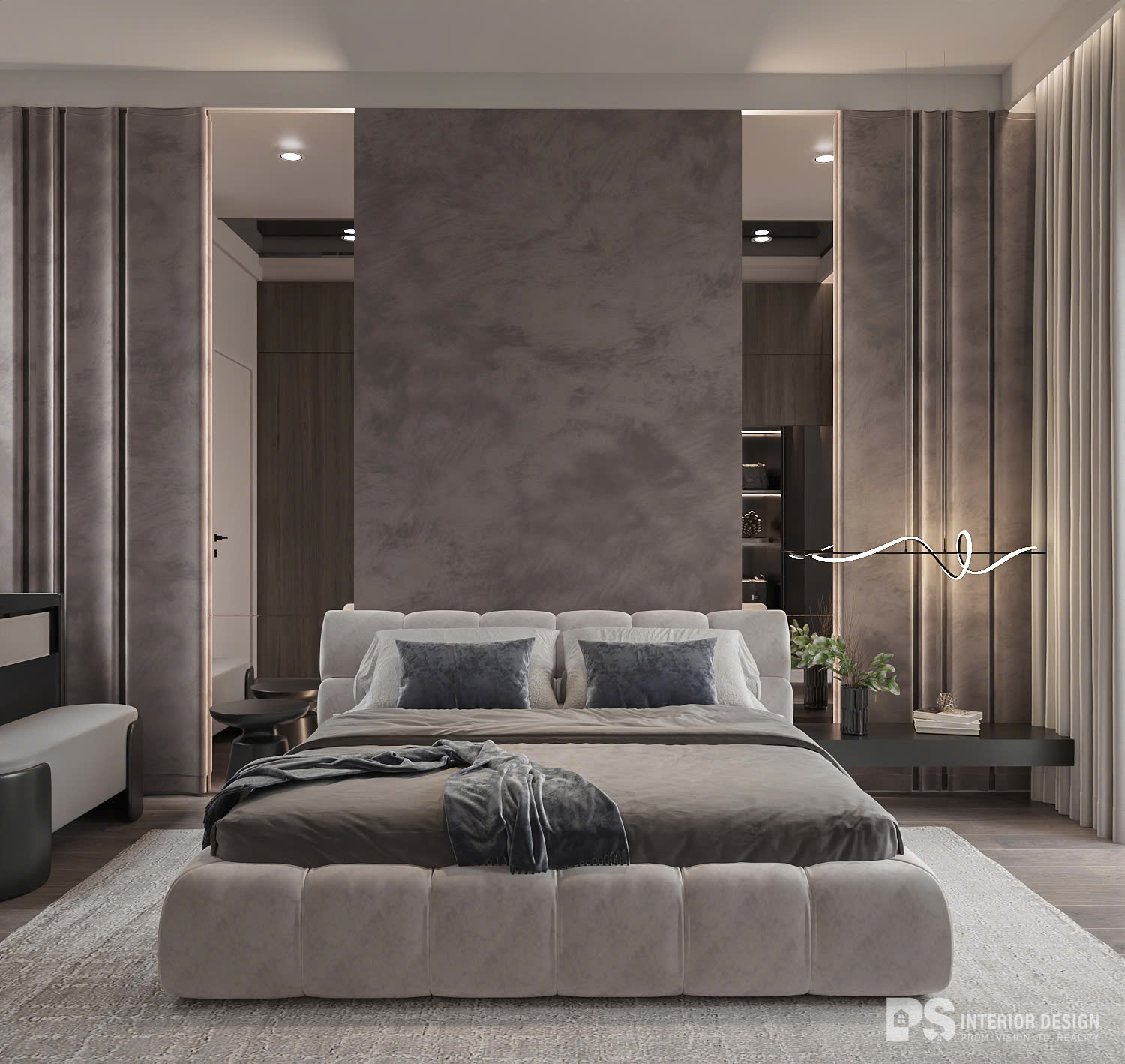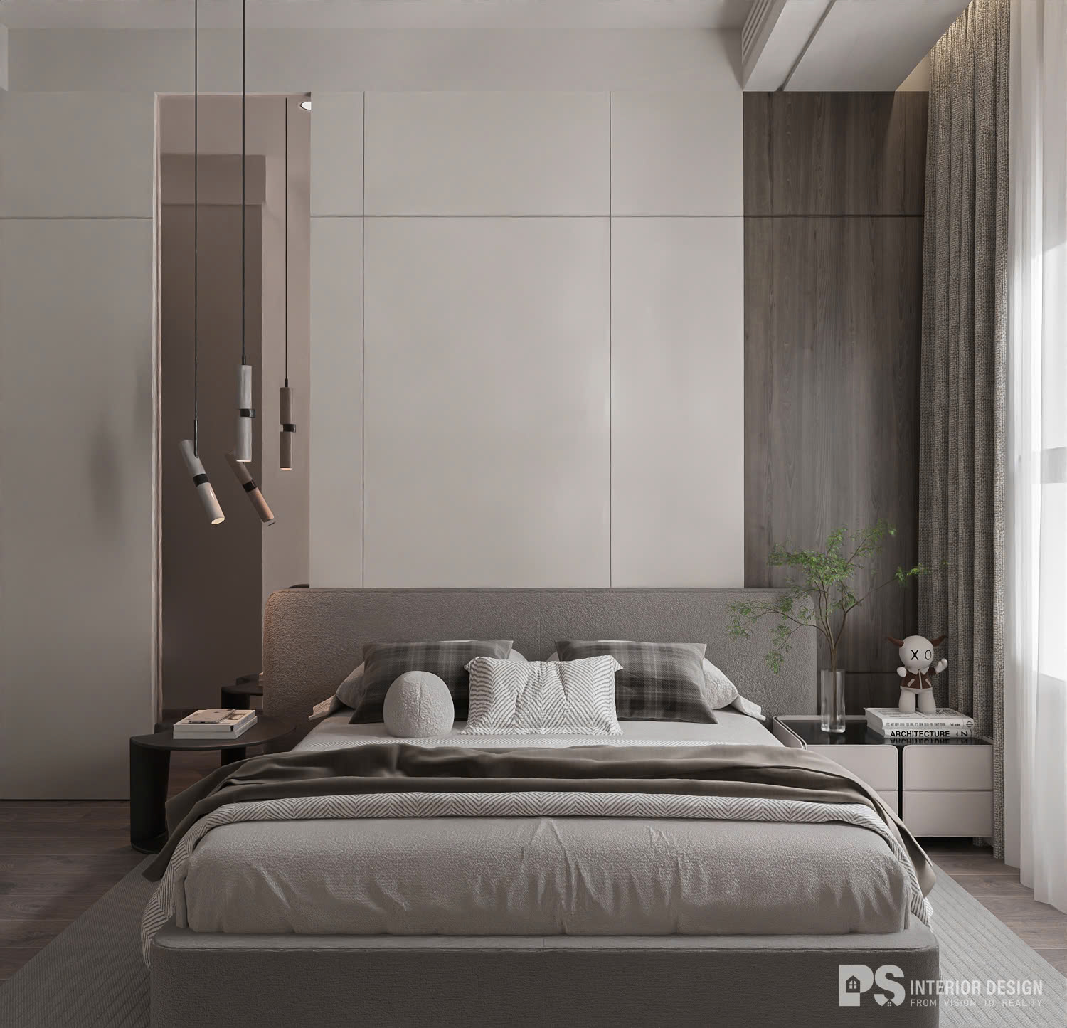 Phòng ngủ lấy trung tính làm nền tảng, thư giãn là trọng tâm; mang đến cảm giác nhẹ nhõm, hoàn hảo để tái tạo năng lượng.