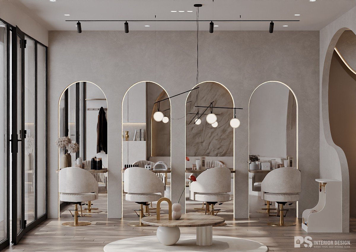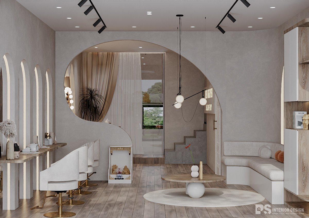Không gian kinh doanh làm đẹp với thiết kế nội thất phong cách Wabi-Sabi tạo ra một môi trường yên tĩnh, mộc mạc và đầy chất thiền. Lấy cảm hứng từ triết lý Nhật Bản, không gian này chú trọng vào sự đơn giản và vẻ đẹp tự nhiên, mang đến trải nghiệm nhẹ nhàng và thanh thoát cho khách hàng. Thiết kế này không chỉ tôn lên vẻ thanh lịch mà còn tạo cảm giác thư giãn, là nơi lý tưởng để khách hàng tận hưởng những phút giây chăm sóc bản thân trong sự tĩnh lặng và bình yên.