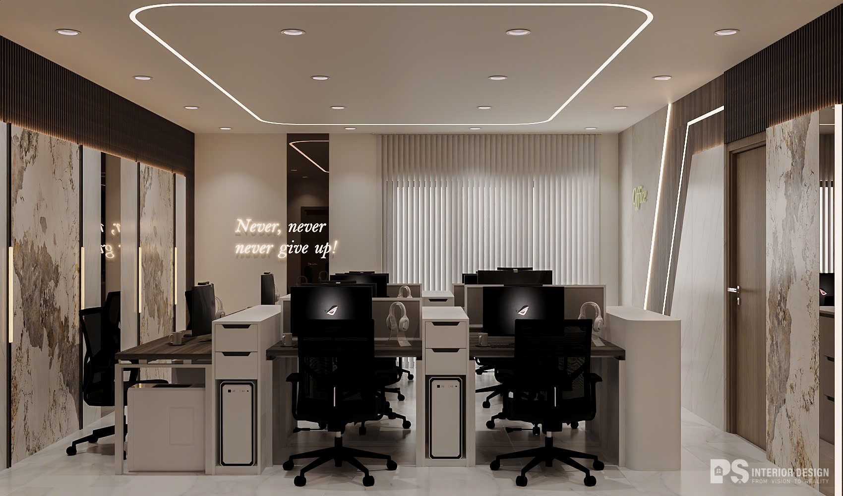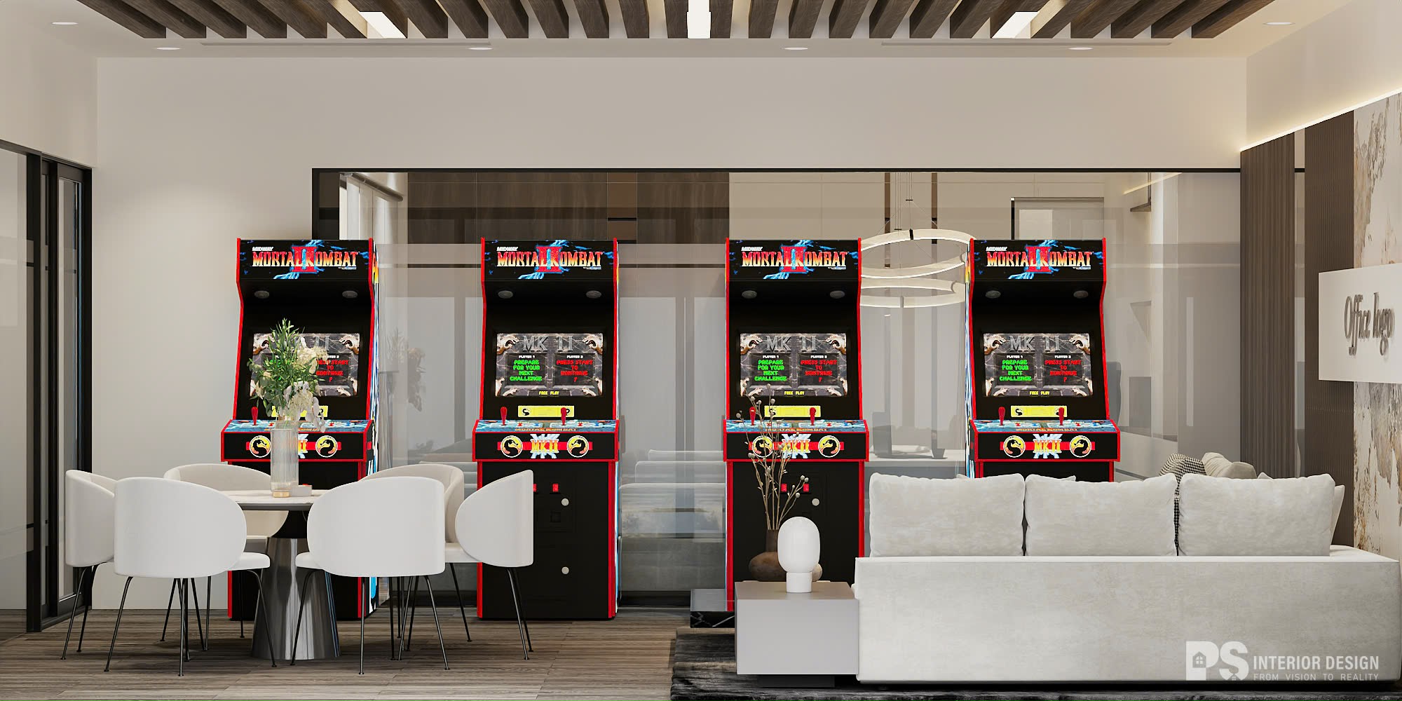 Thiết kế với sắc độ trung tính thanh lịch, nhấn gỗ ấm cúng tạo nên sự kết nối uyển chuyển và cân bằng tuyệt vời giúp Gia Chủ vừa tối ưu hóa hiệu suất làm việc, vừa tận hưởng cuộc sống trọn vẹn. Mỗi không gian đều được chú trọng công năng lẫn thẩm mỹ, đảm bảo mang lại trải nghiệm vượt trội. Chẳng hạn như: Khu làm việc được bố trí để vừa mang lại sự tập trung, vừa thuận tiện cho sự trao đổi kết nối. Phòng sinh hoạt chung có máy chơi game giúp mọi người thư giãn sau giờ làm việc